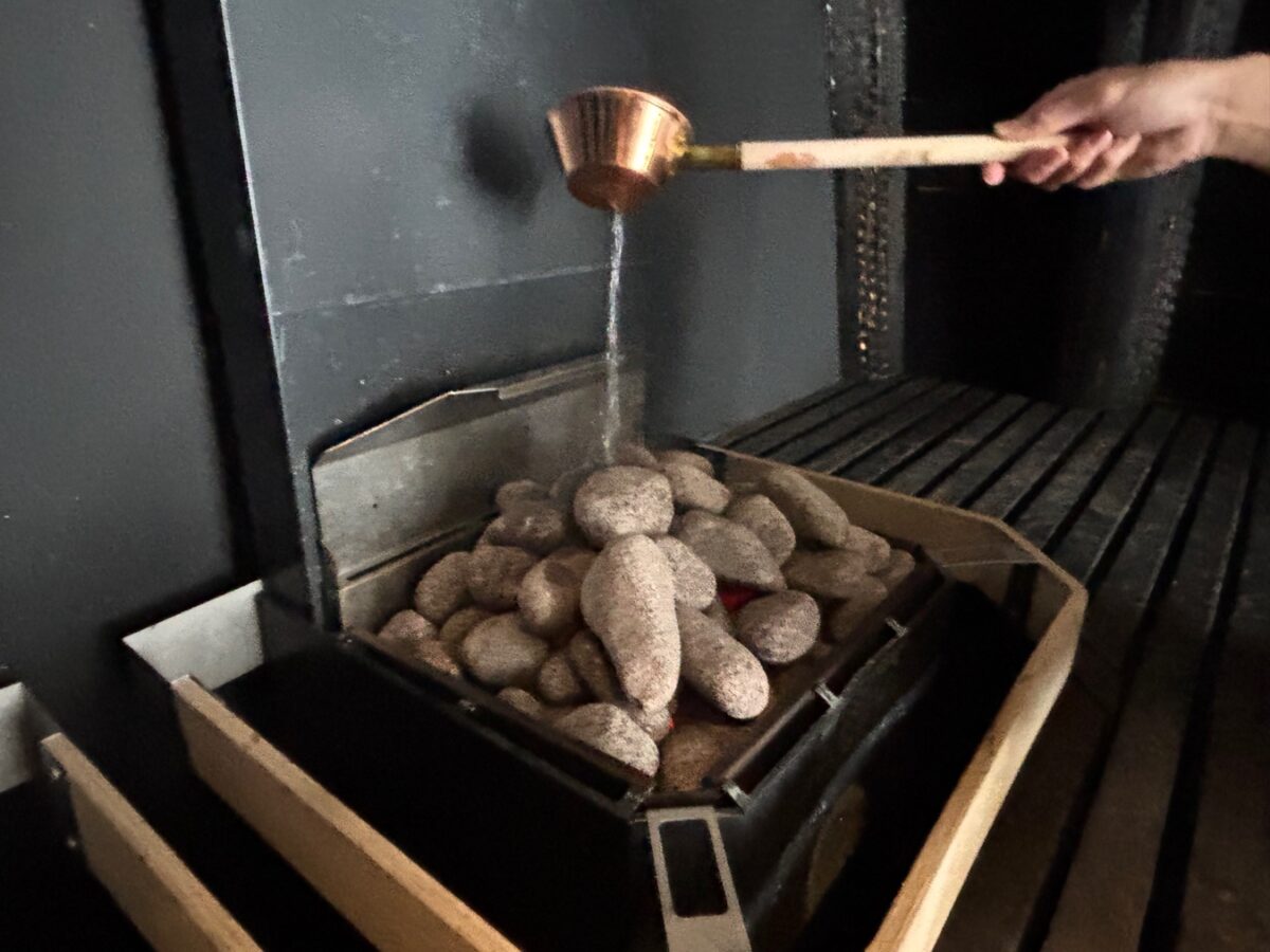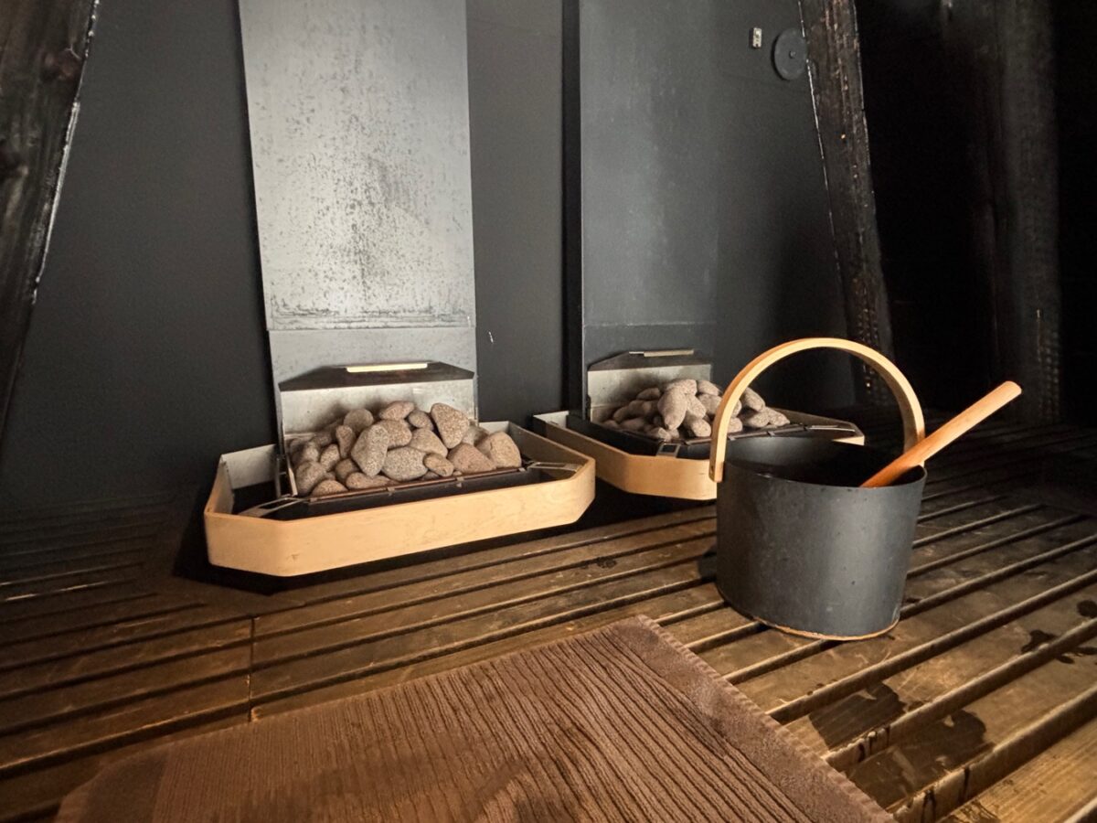 三段構造になっていて、一番上の段にサウナストーブがあるという珍しい作りでした。